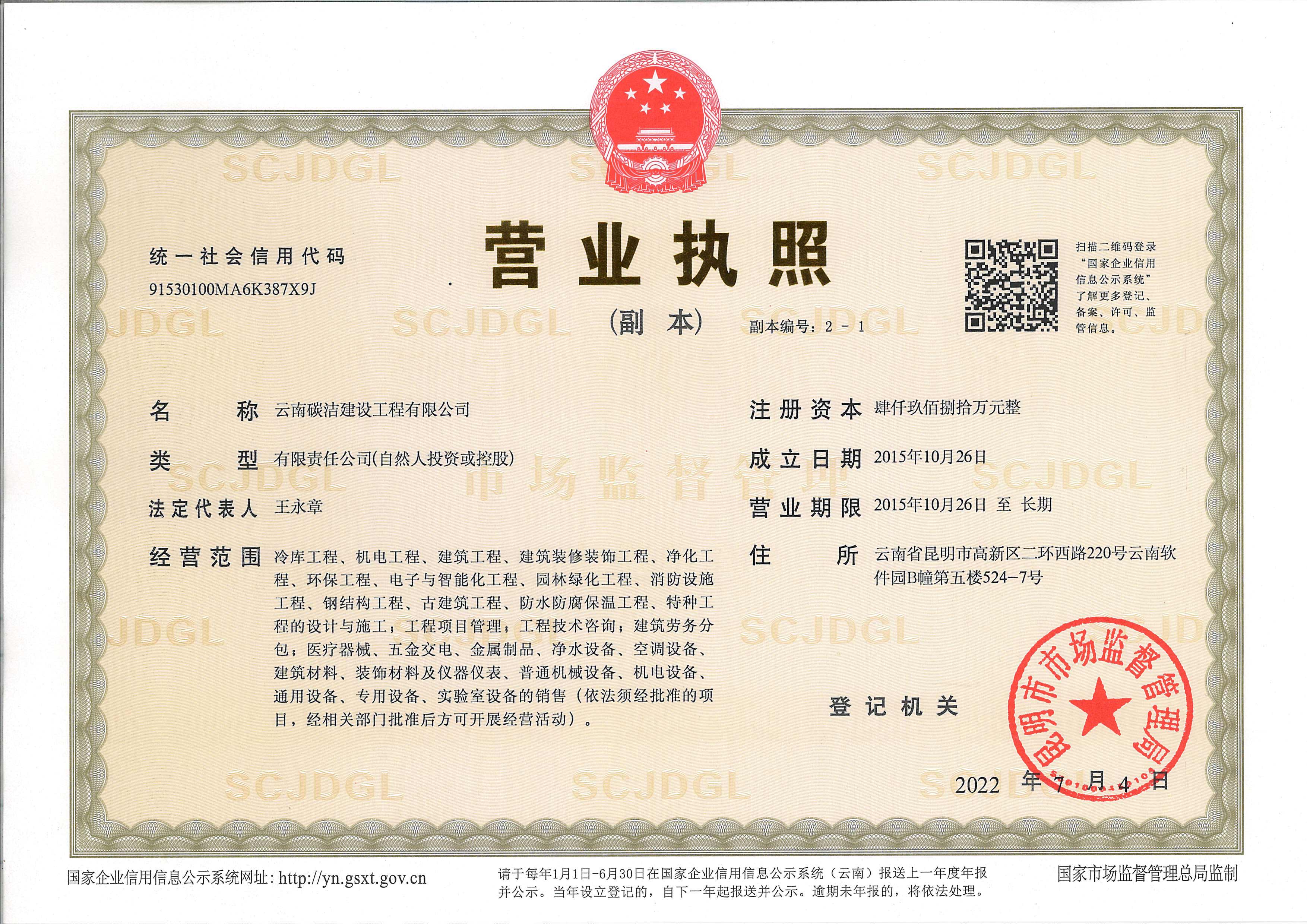 云南碳洁建设工程有限公司成立于2015,是一家专业从事食品制药、医疗卫生、新能源、机械制造及公共建筑等领域建设为一体,专业提供洁净、环保、智能化设施系统解决方案以及工程咨询、工程设计、项目管理、设备采购、建造安装、设备运行维护等全方位专业承包和工程总承包服务和提供工程后期维护保养等综合性配套服务的企业。云南碳洁建设工程有限公司以规范、专业、创新、共赢的经营理念,高效贴心的服务,团结协作、敬业负责、服务奉献、求实进取的企业精神,始终贯彻以追求合作伙伴最大利益为目标,竭诚为合作伙伴提供最大程度的保障。我们将立志打造最精良的优秀团队,并为合作伙伴提供最优秀、最科学、最专业的服务,以获得合作者的信任和支持,打造属于我们自己的品牌。